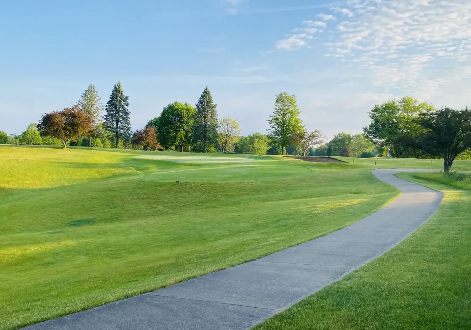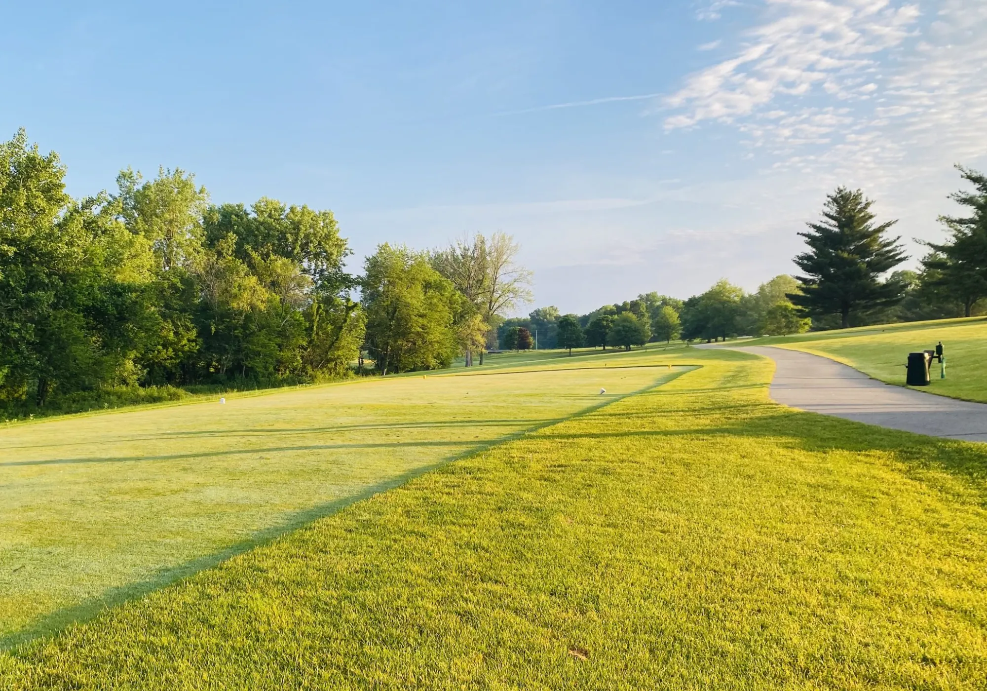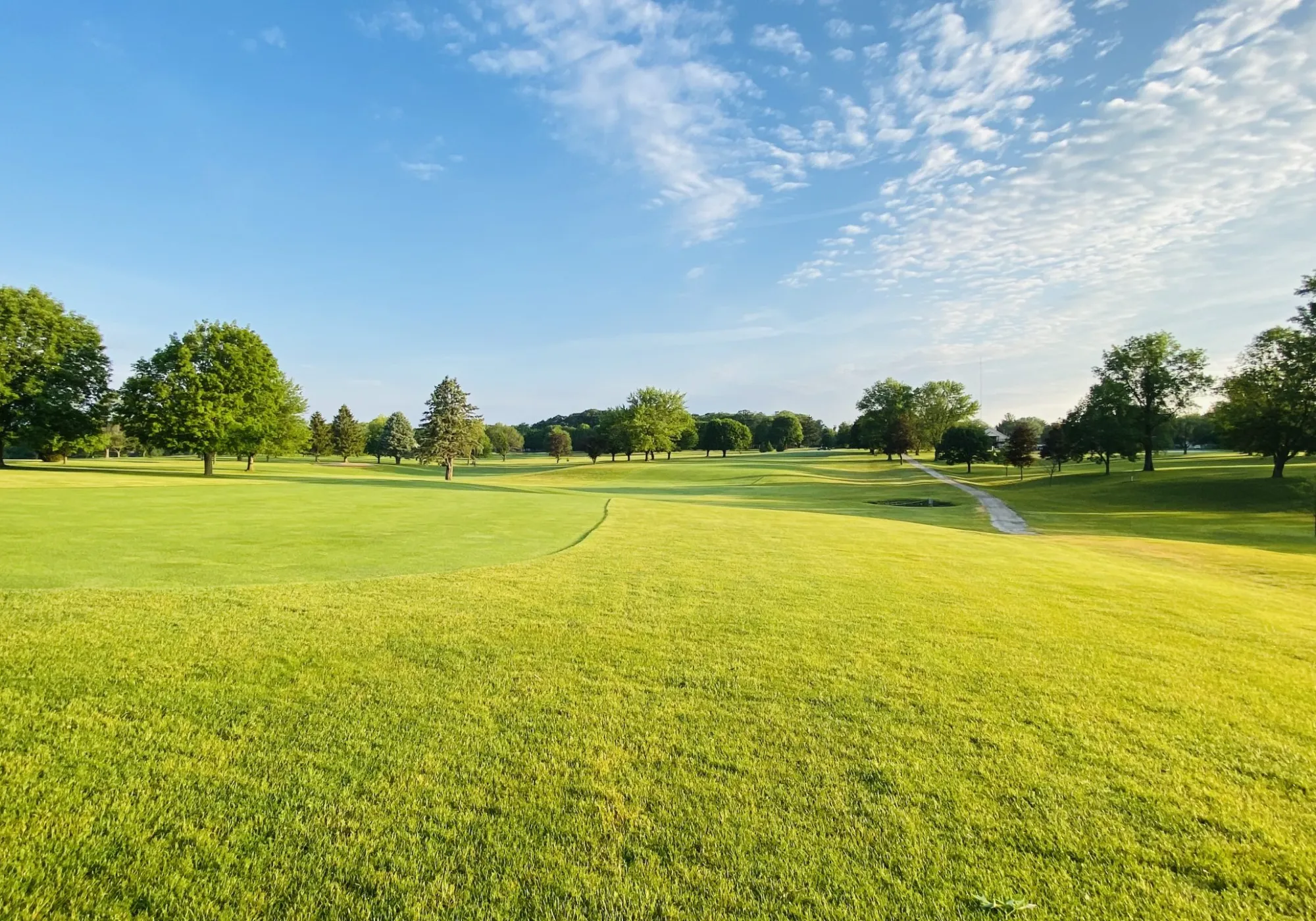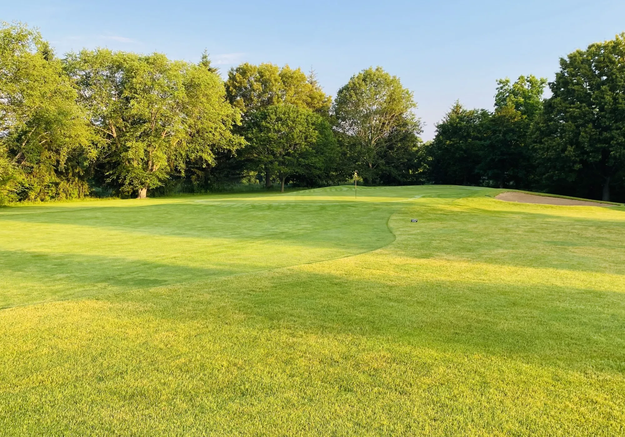 Long straight fairway with a mounded green.