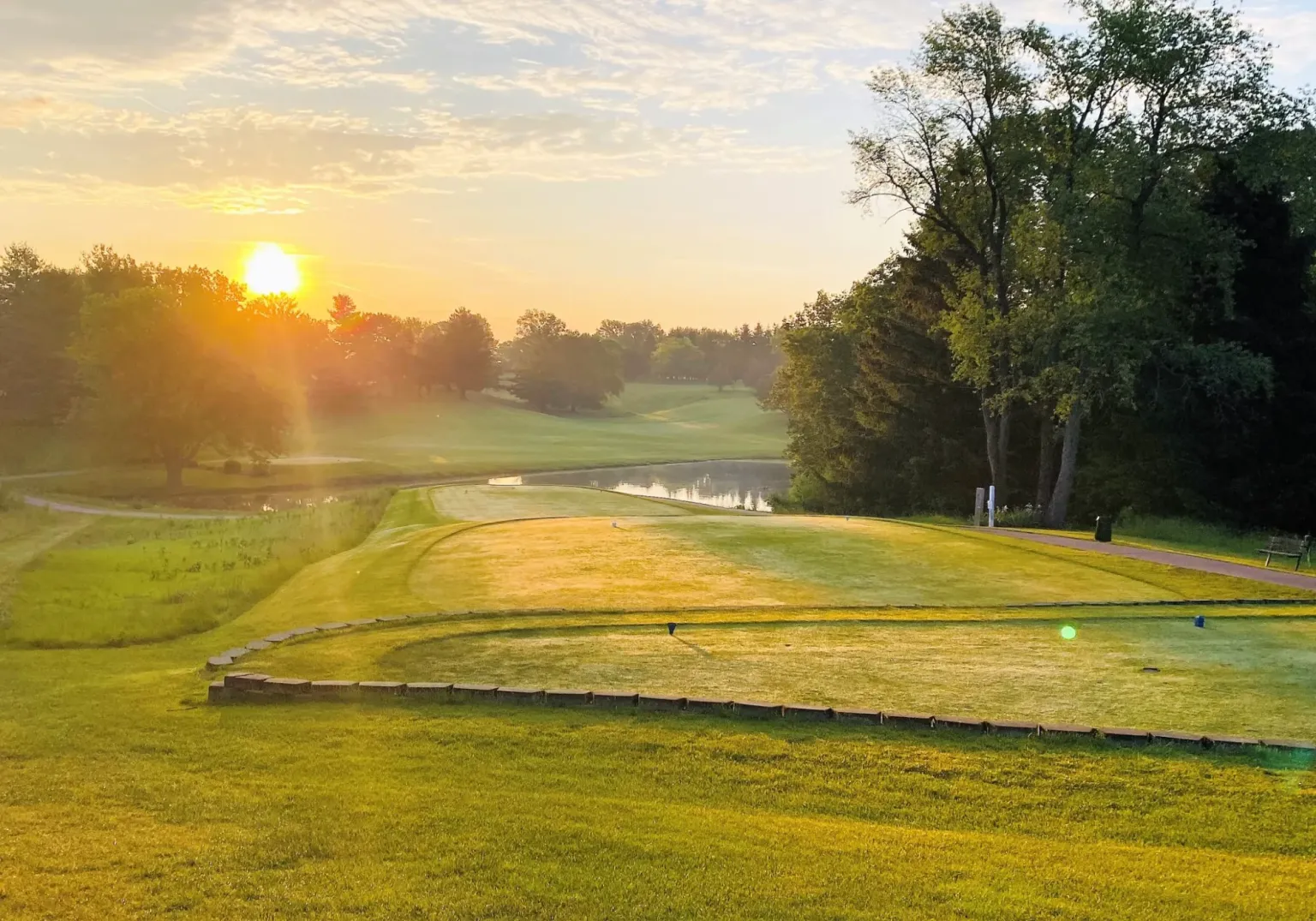 Our signature hole is a par 4, hard dog-leg to the right. Tee shot over water, with an uphill approach shot.